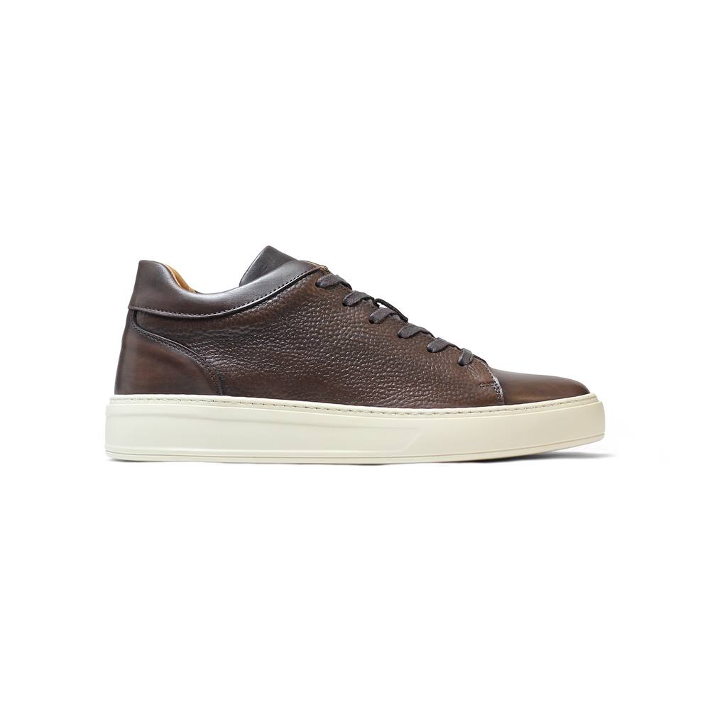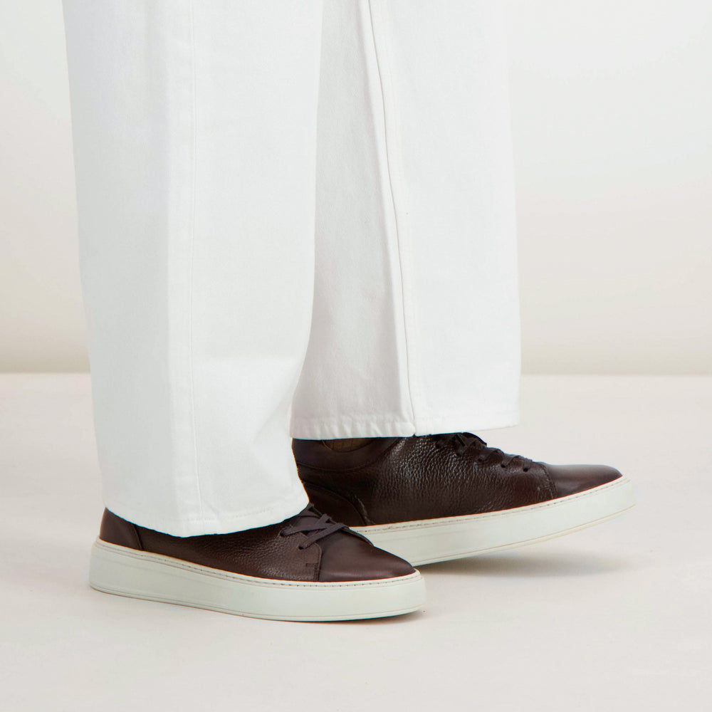 Sneakers / Basket en cuir grainé marron