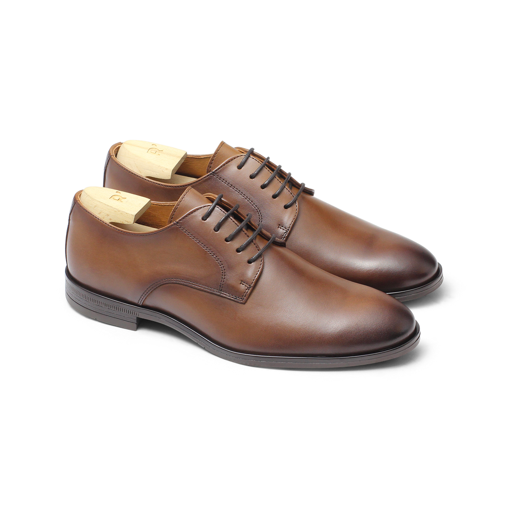 Plus casual que la Richelieu, la derby en cuir pour homme est aussi plus confortable grâce à une semelle souvent plus épaisse en cuir, crêpe ou élastomère, et parfois garnie de trépointes, à l’image de notre emblématique modèle Hooper.