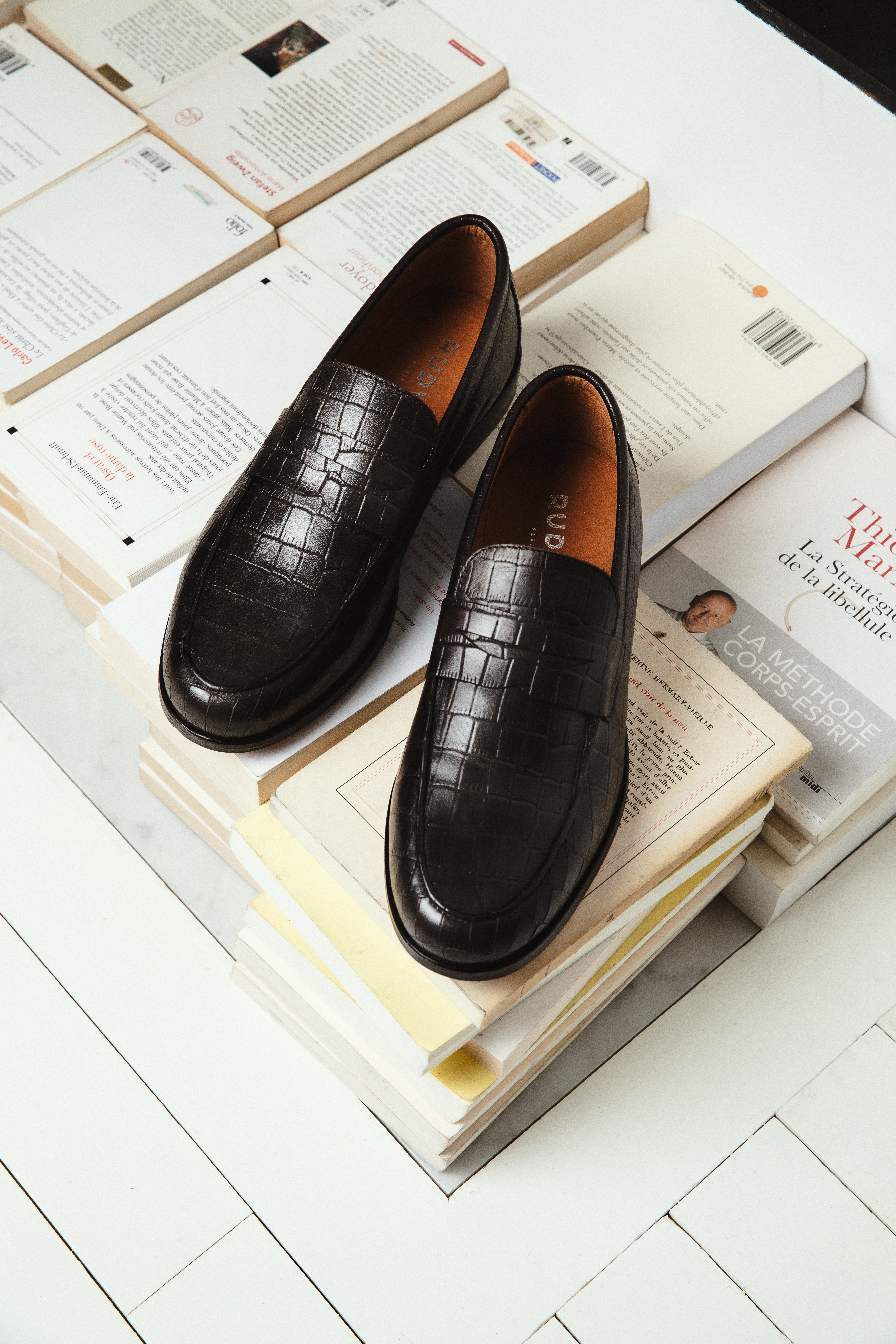 Le modèle Magik incarne l’élégance intemporelle du mocassin, sublimée par un cuir imprimé croco au caractère affirmé. Disponible en marron ou en noir, il se distingue par sa texture raffinée et sa silhouette élancée, parfaites pour un style habillé et contemporain.