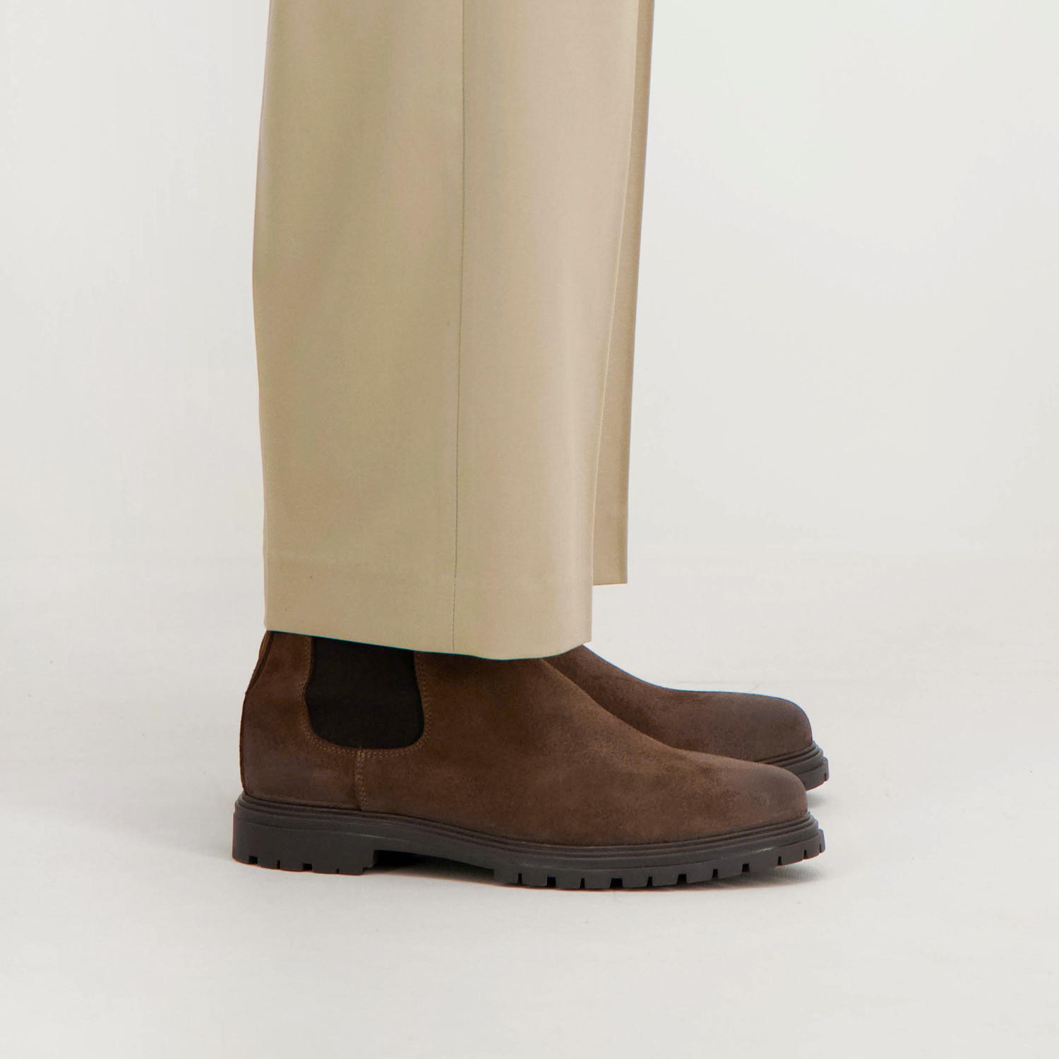 Côté cuir, nous sommes partis sur de la sobriété, un velours brossé, sans ornement, ni fioriture, qui se suffit à lui-même. Plus facile à porter, il s'accordera avec un grand choix de tenues. Comme par exemple votre traditionnel jean brut selvedge, votre dernier coup de coeur , un pantalon en flanelle 100% laine ou encore votre costume gris du lundi.